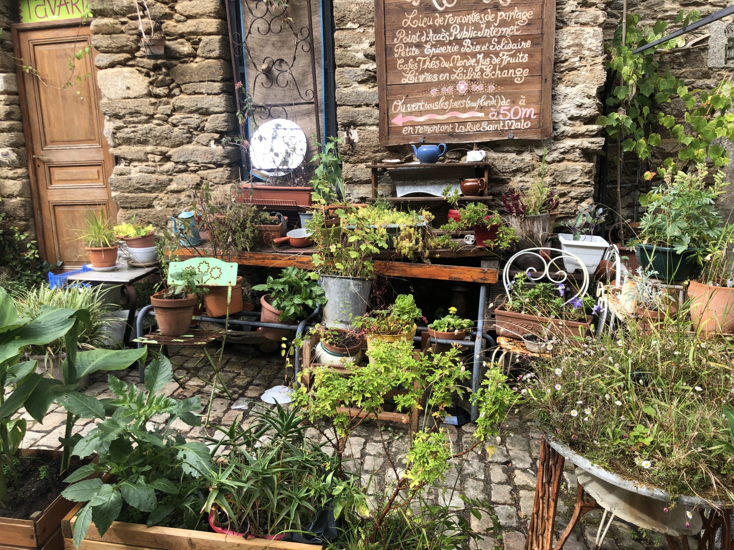 Nous avons ensuite flâné rue de Saint Malo, entre les street arts et les cafés associatifs, dans ce qui nous a vaguement évoqué les Tanneries à Dijon (ou tout espace associatif partagé fleurant bon l’esprit d’initiative et la reconquête joyeuse des espaces urbains).
