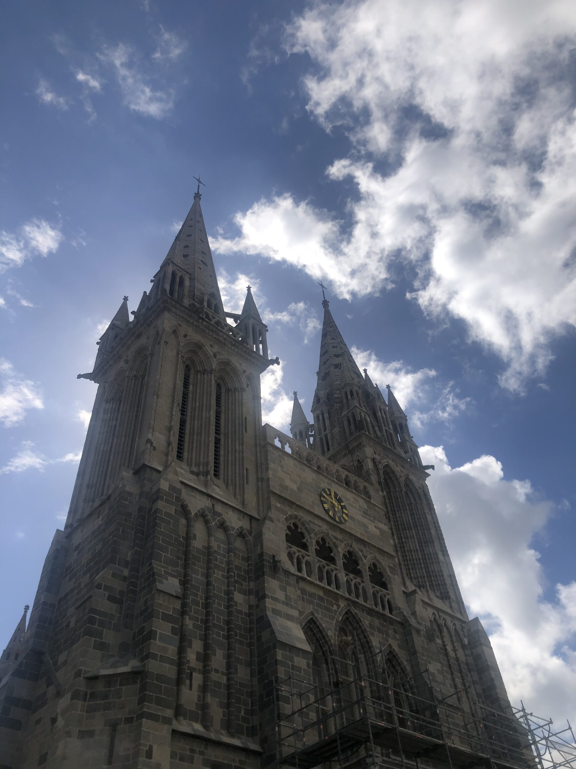 Avant de prendre le lendemain la route pour notre dernière étape : le petit port de pêche de Saint Pol de Léon, villégiature de vacances par deux fois déjà pour le Castor. On commence par une promenade au centre ville, à revoir la place du marché et le pied de la Cathédrale. On déguste du far breton et des fraises, on déambule dans les rues puis on poursuit jusqu’au camping près de l’îlot Saint Anne, où le parking est pris d’assaut….